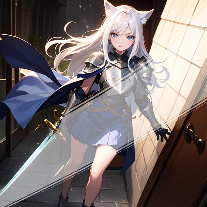 剣が閃き、白銀の髪が月光に輝くたび、少女騎士の舞うような動きが男たちを次々と倒していく。